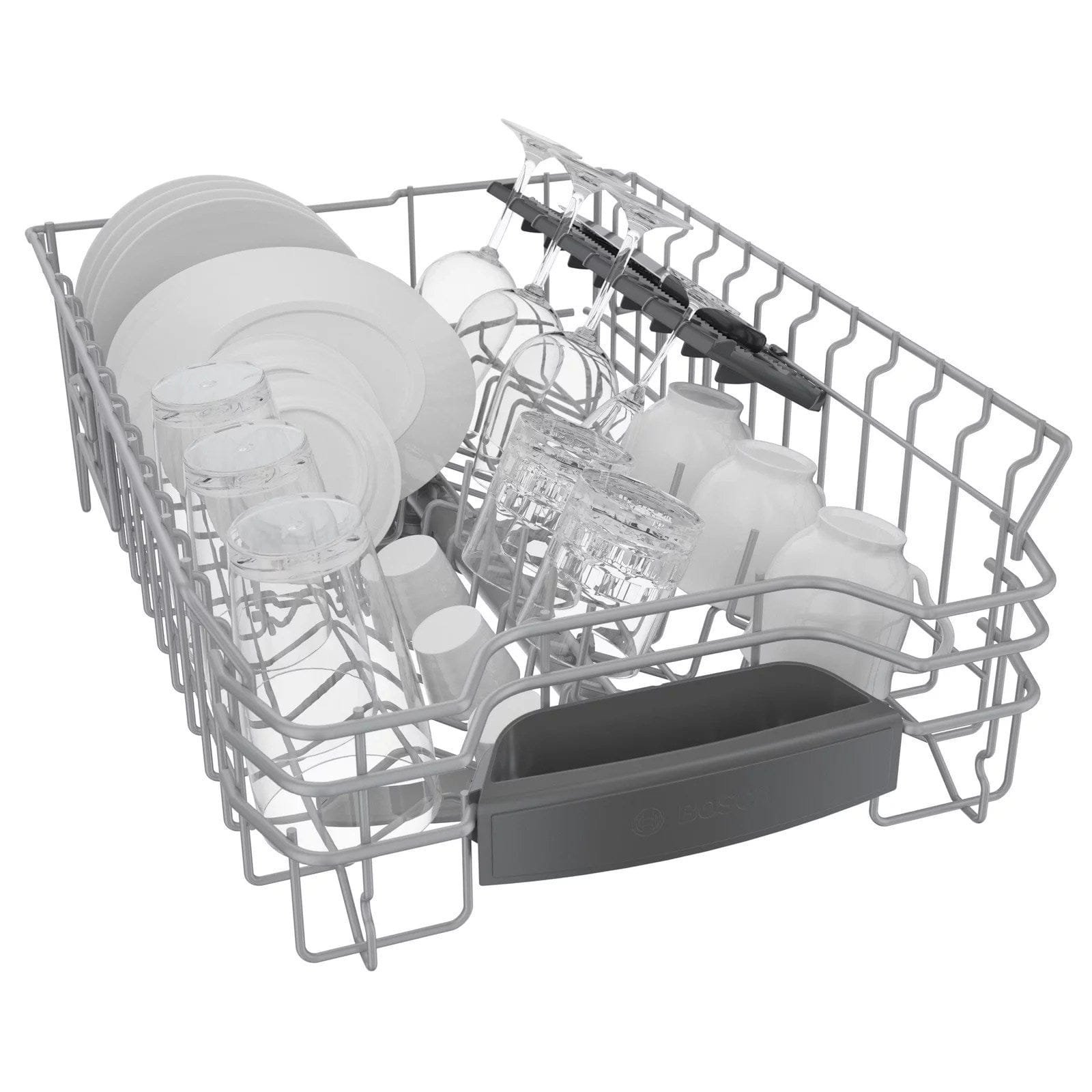 - Standard 3rd rack provides the perfect space for silverware and large utensils, while its V shape leaves room below both sides for taller items like stemware. Also includes a lower rack silverware basket