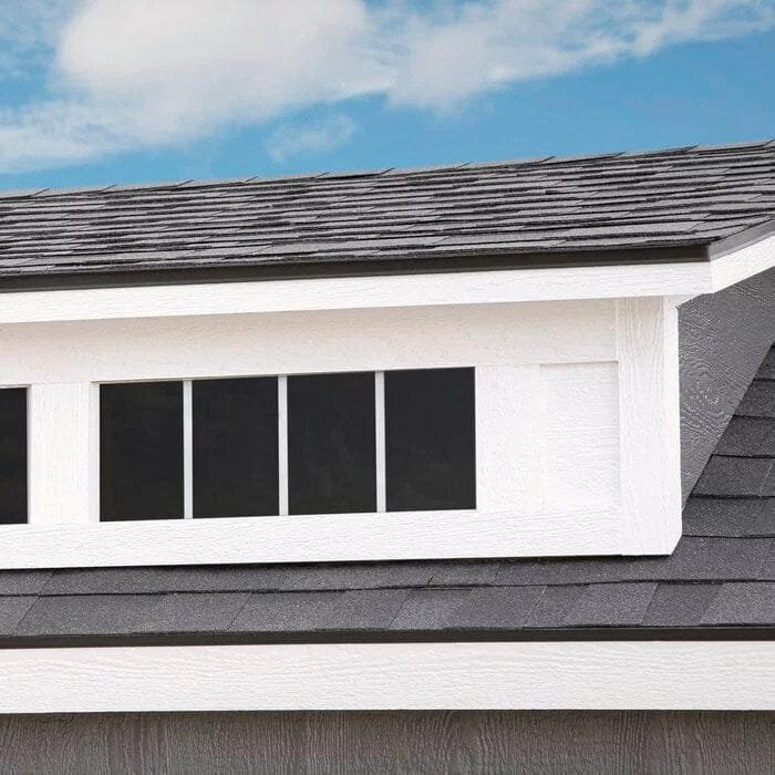 The Handy Home Windemere Do-it-yourself wood shed kit is in a class all its own – contemporary styling, extended, architectural roof overhangs, and loaded with extra features. Towering, 10 ft. high with over-sized, 7 ft. high sidewalls, this ultra-premium storage shed has it all. The treated, engineered wood siding resists fungal decay and wood-destroying insects and the choice, 2×4 wood framing provides ground-to-peak strength. Pre-hung, 56 in. wide by 6 ft. high double doors with integrated transom windows are mounted on full-length galvanized steel hinges to prevent door sagging and keep doors aligned for optimal performance. The Windemere has shed DNA but begs to be more than a storage shed. Providing 1018 cu. ft. of storage capacity, this multi-versatile wood building fits the need for storage and recreation, a creative workspace, or a lifestyle-inspired sanctuary. This wooden shed also includes a complete wood floor with treated wood floor framing and wood floor decking, deluxe window suite, appearance package, organization package, and a keyed locking handle to keep your items safe and secure. Illustrated instructions, hardware, and limited material warranty included. Paint and shingles not included (both sold separately).